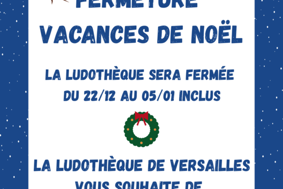 La ludothèque sera fermée pendant les 2 semaines des vacances scolaires. Nous vous retrouverons le mardi 6 janvier 2026. Bonnes vacances et bonnes fêtes de fin d’année à tou.te.s