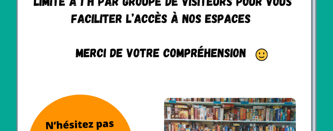 En cas de forte affluence, nous vous informons que le temps de jeu sera exceptionnellement limité À 1 h par groupe de visiteurs pour vous faciliter l’accès à nos espaces